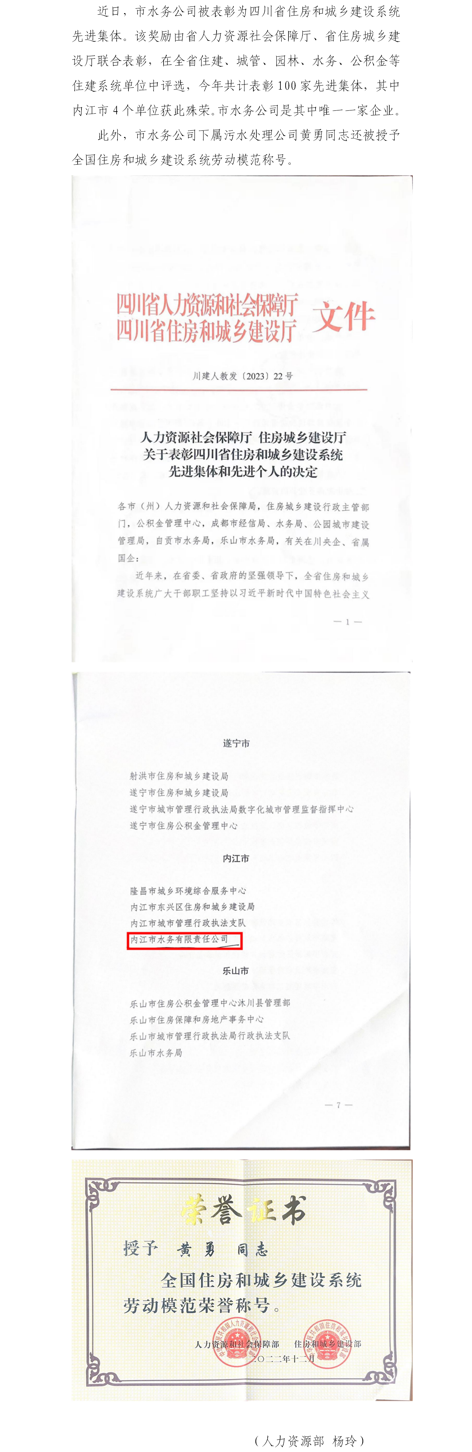 內(nèi)江唯一一家企業(yè)!市水務公司榮膺全省住建系統(tǒng)先進集體