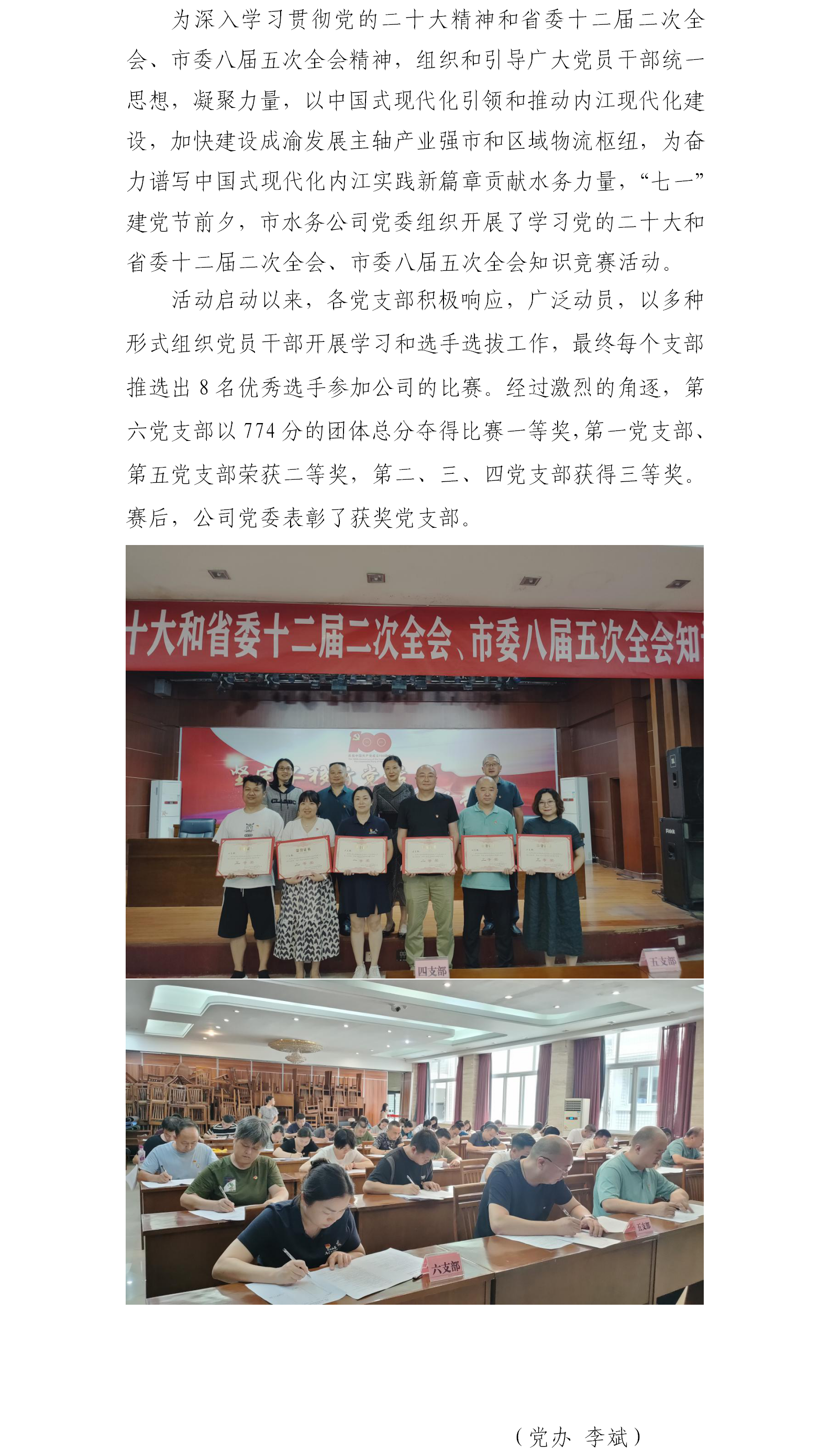 市水務(wù)公司開展黨的二十大和省委十二屆二次全會(huì)、市委八屆五次全會(huì)知識(shí)競(jìng)賽