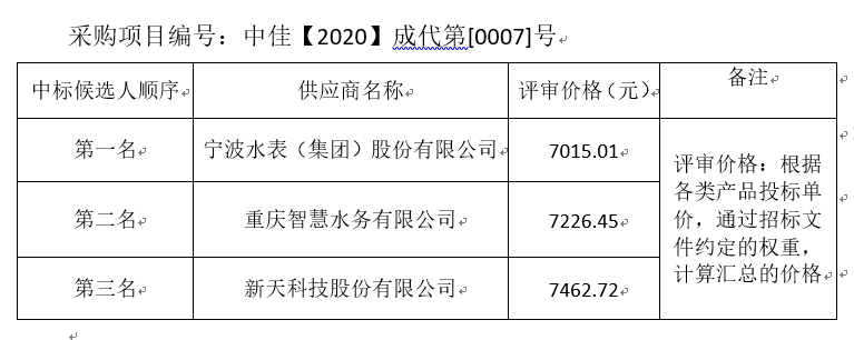 內(nèi)江市水務(wù)有限責任公司水表采購項目 評標結(jié)果公示