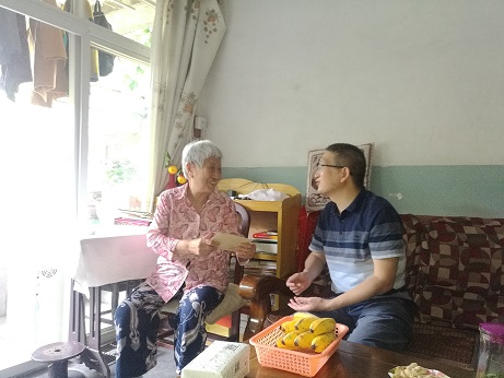 在于淑蘭、黃仁宇、張樹華、明素蘭四位老黨員干部居所,杜科同他們拉家常,關(guān)心老同志們身體狀況及生活情況,傾聽他們講述創(chuàng)業(yè)故事,叮囑老前輩在炎熱夏季注意防暑降溫,希望他們繼續(xù)為公司發(fā)展建言獻策,并衷心祝愿他們生活快樂、健康長壽。 (黨委辦公室 柏月)