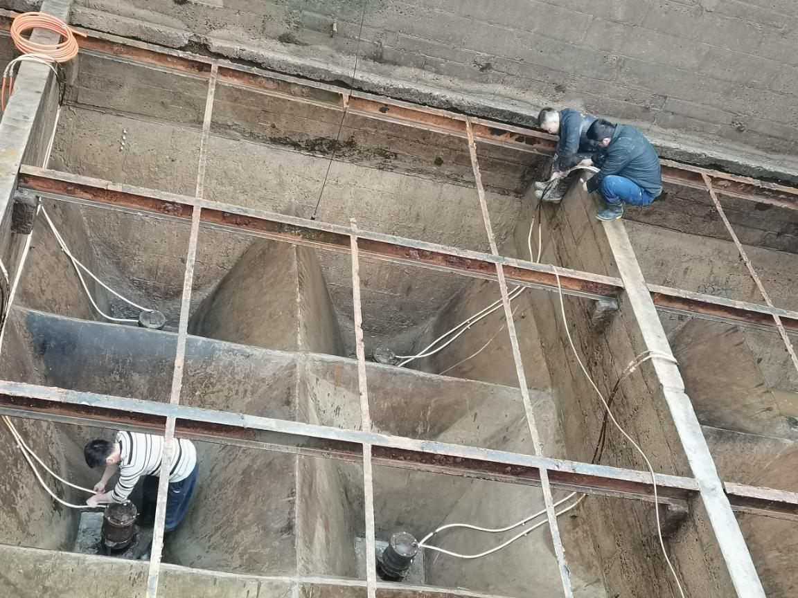 為提高生產(chǎn)運行可靠性,保障安全供水,二水廠結(jié)合浮沉池斜板改造工作,同步推進池底閥檢修,既節(jié)約時間又降低生產(chǎn)能耗。在池底閥檢修工作中,我廠維修人員不懼風雨、不畏艱辛,根據(jù)工作需要主動加班加點,用實際行動詮釋水務人保安全供水的決心。