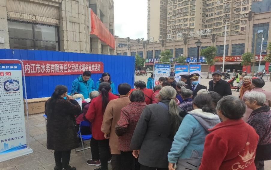 10月27日下午,市水務(wù)公司客戶服務(wù)部、生技部、二次供水服務(wù)公司聯(lián)合開展了宣傳進(jìn)社區(qū)活動(dòng)。工作人員統(tǒng)一著裝,黨員佩戴黨徽,現(xiàn)場(chǎng)與內(nèi)江市漢祥小區(qū)居民開展“面對(duì)面、零距離”交流。講解二次供水、階梯水價(jià)、垃圾處理費(fèi)、水費(fèi)單價(jià)生成等用戶關(guān)心的問(wèn)題,并提倡大家節(jié)約用水,宣傳水資源的重要性。