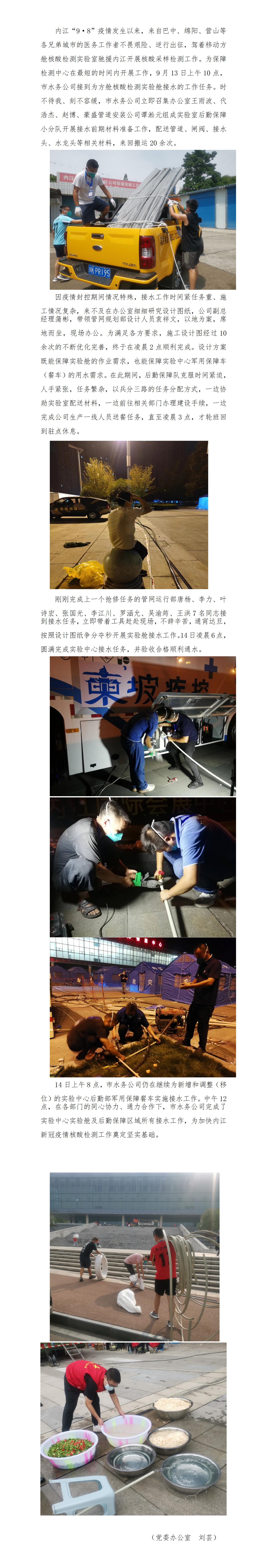 刻不容緩 市水務公司為內江國際會展 中心移動方艙核酸檢測實驗中心接水