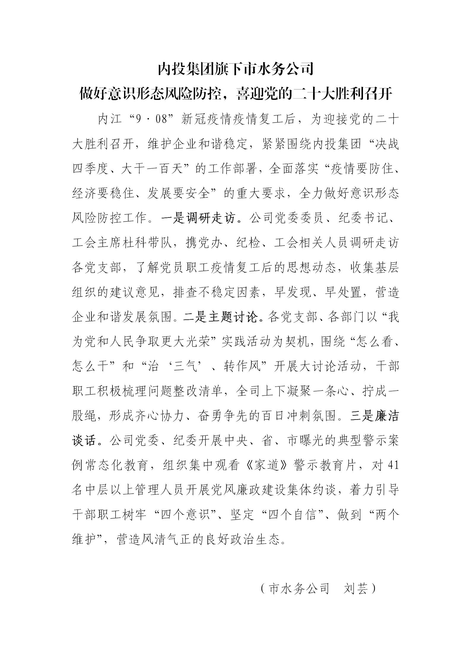 內(nèi)投集團(tuán)旗下市水務(wù)公司 做好意識形態(tài)風(fēng)險(xiǎn)防控,喜迎黨的二十大勝利召開