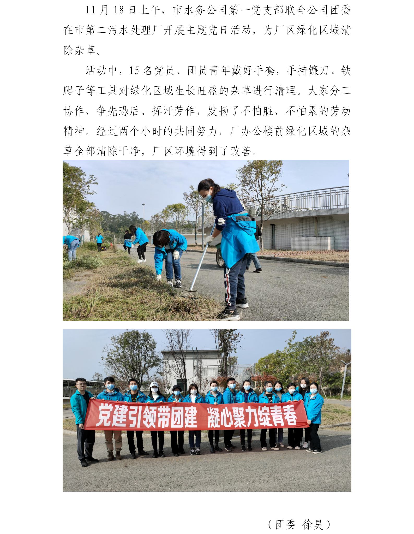 市水務(wù)公司第一黨支部聯(lián)合團委開展除草志愿服務(wù)