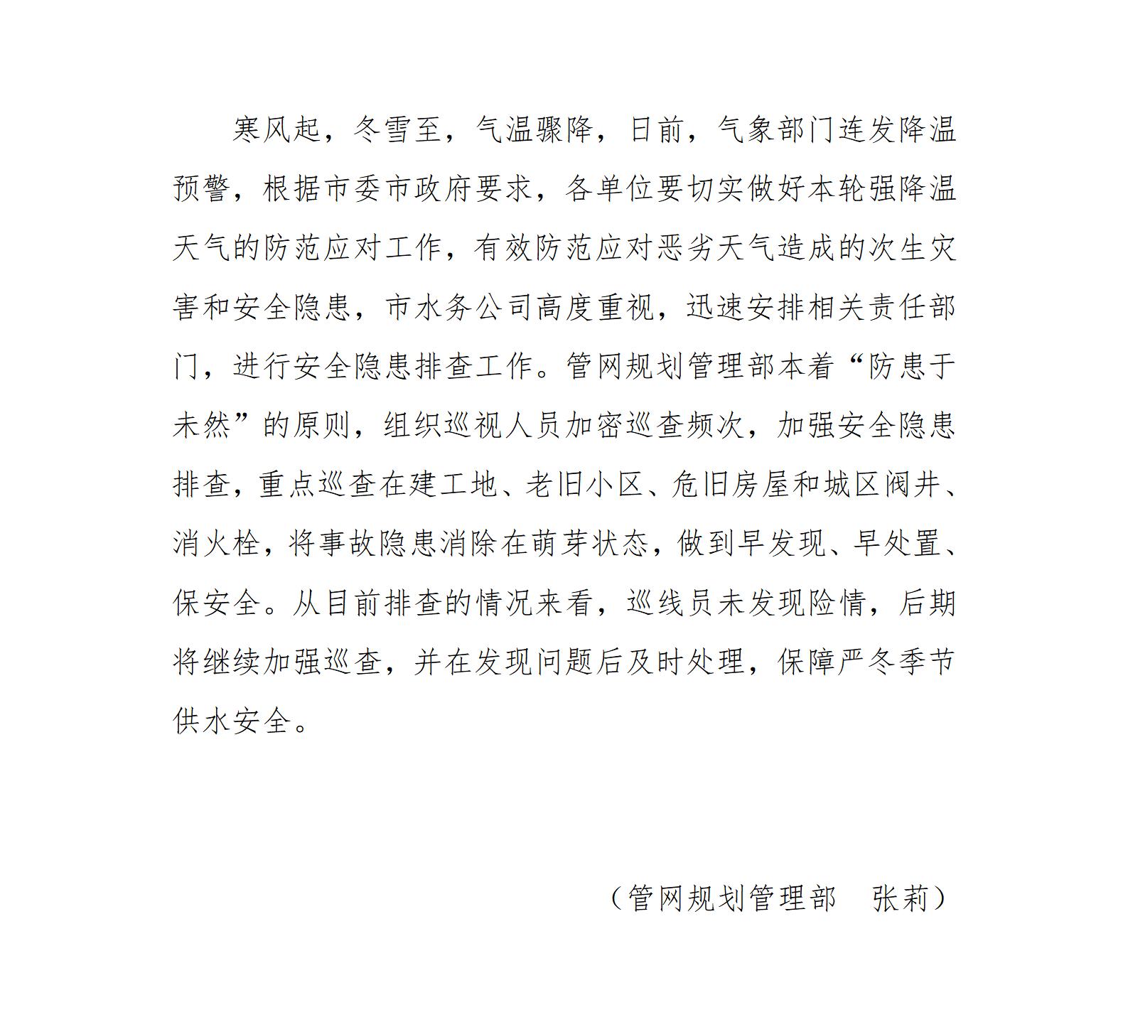 寒潮來(lái)臨 保供水安全