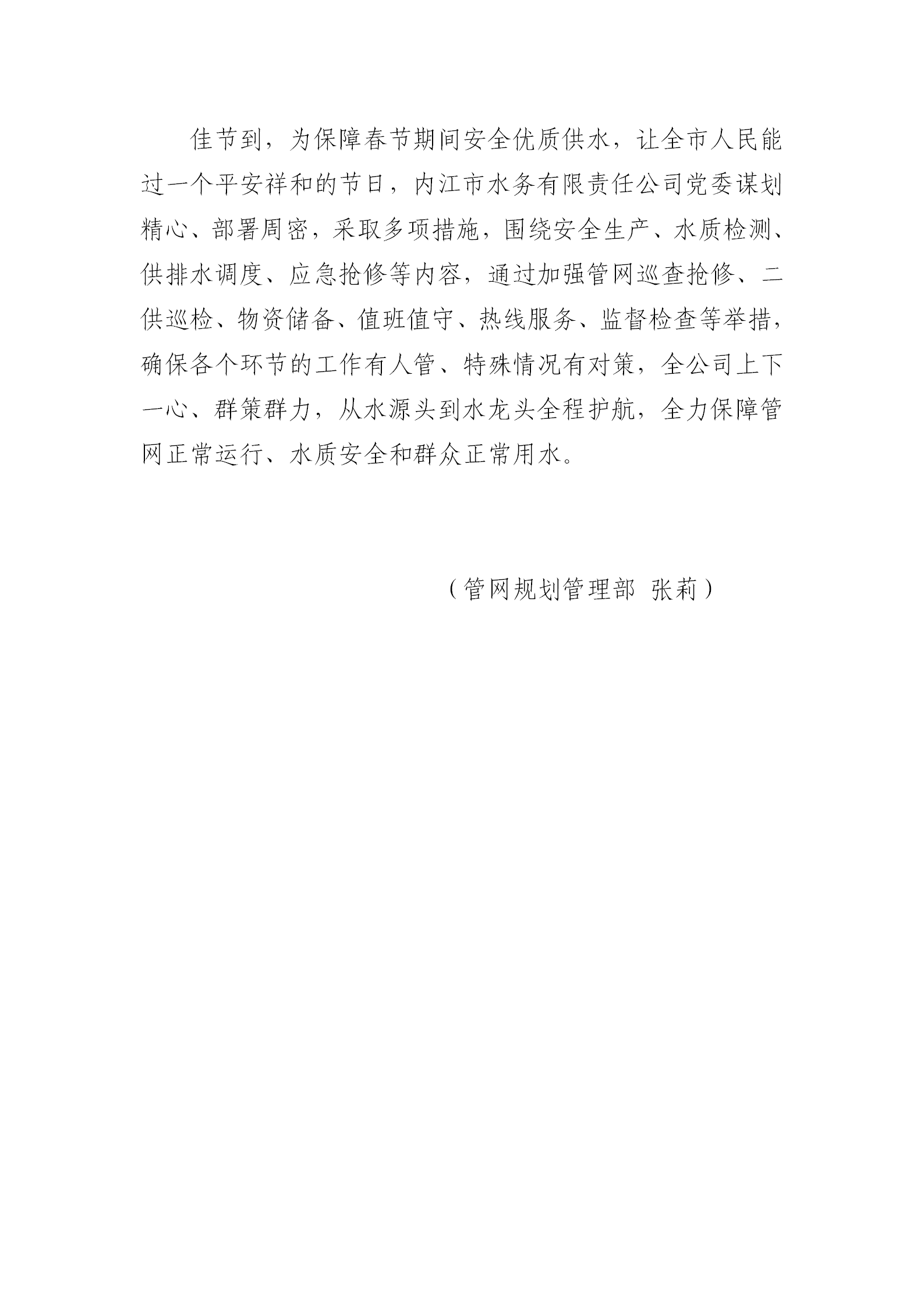 佳節(jié)到 從水源頭到水龍頭全程護航