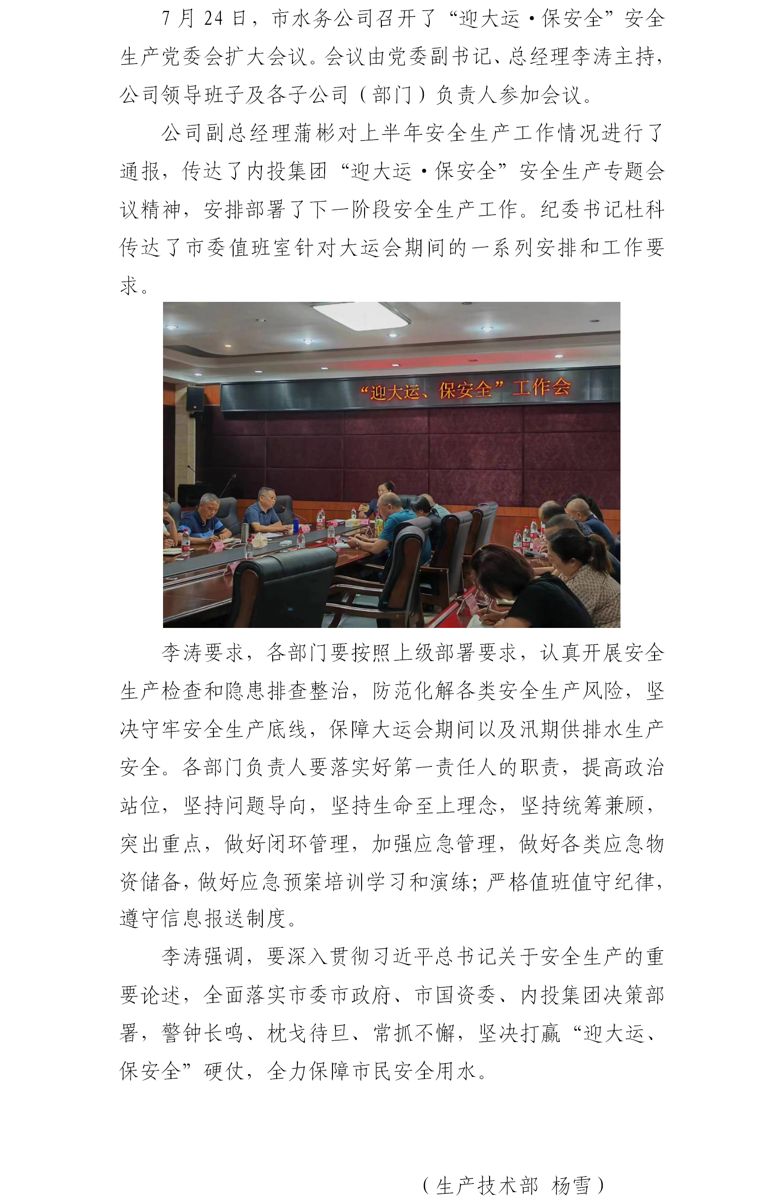 公司召開“迎大運·保安全”安全生產(chǎn)工作會議 ——全力以赴保穩(wěn)定防災害