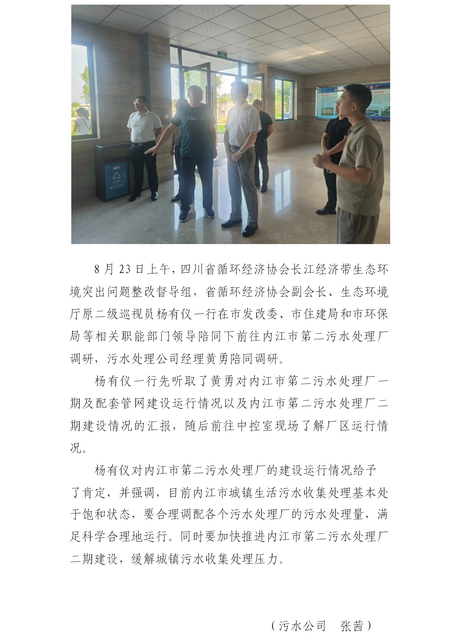 四川省循環(huán)經(jīng)濟協(xié)會長江經(jīng)濟帶生態(tài)環(huán)境突出問題整改督導(dǎo)組調(diào)研內(nèi)江市第二污水處理廠