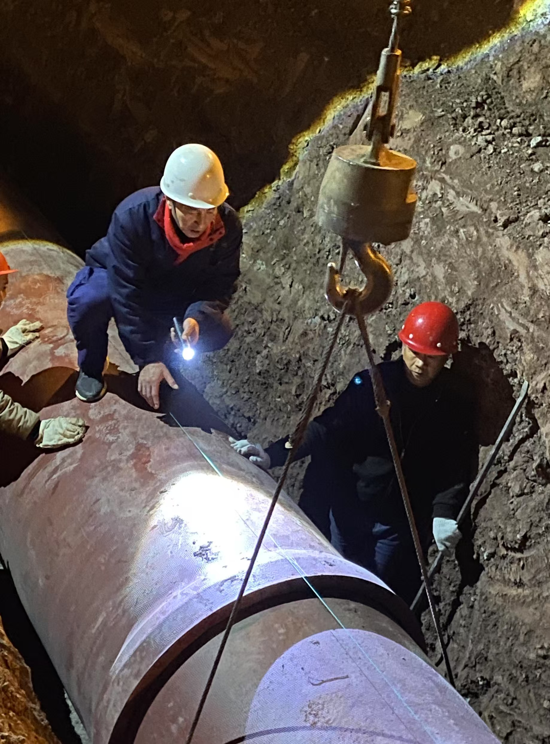 在寒風(fēng)中,工人們用雙手熟練地操作著各種冰冷的機械設(shè)備,進(jìn)行著五河路到大千路口段污水管網(wǎng)鋪設(shè)工作。他們始終將質(zhì)量放在首位,一次次地調(diào)整管道位置,確保每一根管道拼接合攏、無縫連接,每一根管道的連接。他們用實際行動詮釋了水務(wù)人的責(zé)任、擔(dān)當(dāng)與堅守。