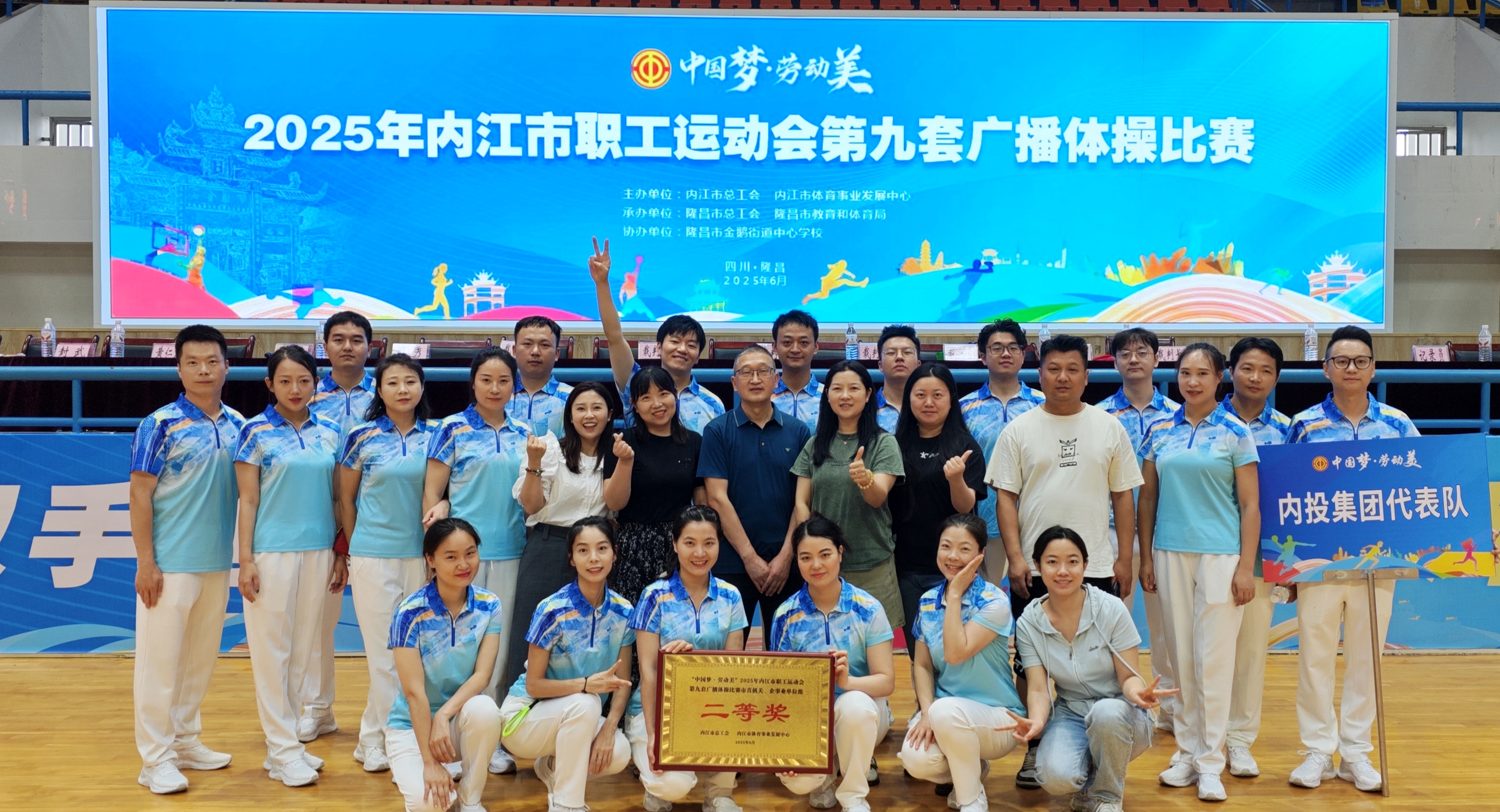 6月21日,2025年內(nèi)江市職工運動會第九套廣播體操比賽在隆昌市體育中心成功舉辦。由市水務(wù)公司和云智科技公司聯(lián)合組成的內(nèi)投集團(tuán)公司代表隊?wèi){借優(yōu)異表現(xiàn),榮獲市直機(jī)關(guān)、企事業(yè)單位組第二名,喜獲二等獎。