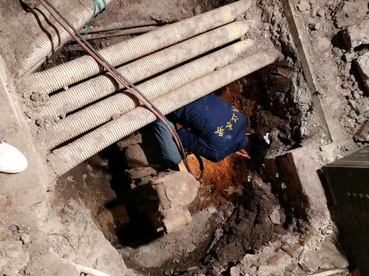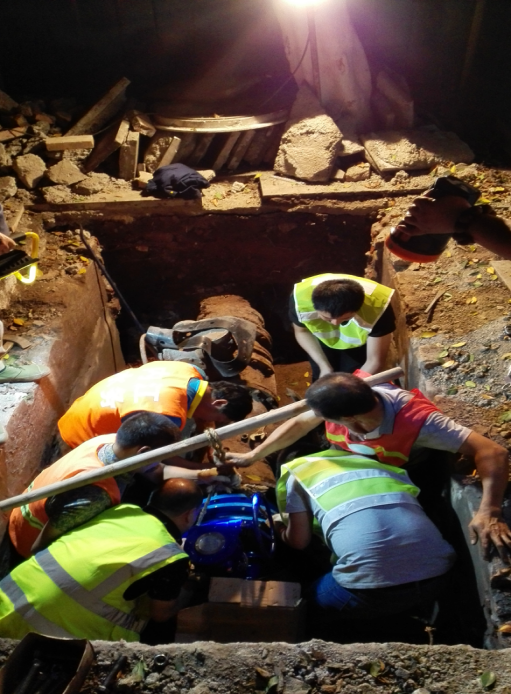 在管網(wǎng)規(guī)劃管理部、物資供應(yīng)部、豪盛管道安裝公司及工會等部門的緊密配合下,5月17日晚22時,管網(wǎng)運行部按改造實施方案對平安路兩側(cè)3臺蝶閥進行了更換。為縮短停水時間,施工前管網(wǎng)運行部組織召開了兩次施工分析會,制定了工作方案,并對施工現(xiàn)場提前組織開挖,設(shè)置安全圍擋、照明等安全設(shè)施,為順利實施蝶閥更換做好充分準(zhǔn)備。施工中,維修人員們克服深夜疲勞、操作場地狹小等不利因素,特別是楊孝成,鄧軼峰、劉超、程建軍等冒著高溫天氣及氧焊的熱浪,在弱電管線交錯縱橫的狹窄空間里拆卸生銹螺栓,安裝更新蝶閥。經(jīng)過7個多小時連續(xù)作業(yè),在18日凌晨5時順利完成此次改造工作,比預(yù)期通水時間提前1個小時,保證了周邊用戶正常用水。