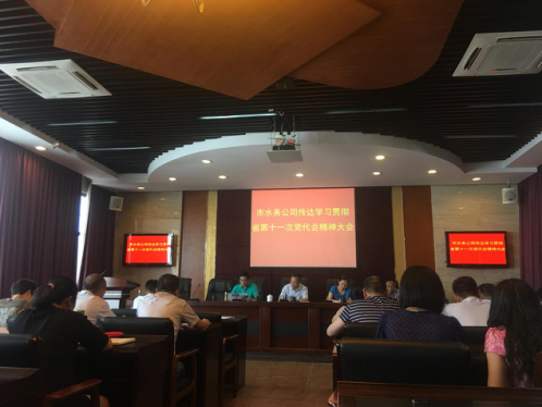 2017年6月9日下午,市水務(wù)公司黨委組織全體中層及以上干部及黨務(wù)工作人員共46人在公司二會(huì)議室召開(kāi)了省十一次黨代會(huì)精神宣貫會(huì)。會(huì)議由黨委副書(shū)記李濤主持。