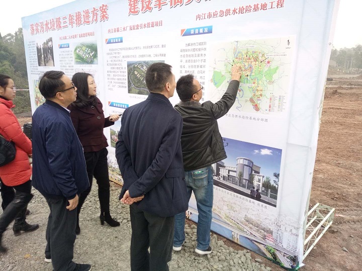 11月28日,省環(huán)境保護廳副巡視員姚東升一行到內江,對落實污水垃圾三年推進方案落實情況進行調研。調研組先后來到了桐梓壩大橋至壽溪河口綜合環(huán)境整治工程、謝家河黑臭水體整治、東興區(qū)垃圾壓縮站及環(huán)衛(wèi)車輛專用停車場,最后來到我司第二污水處理廠建設施工現(xiàn)場進行實地調研。公司黨委副書記、紀委書記、工會主席李濤在《落實污水垃圾三年推進方案,建設幸福美麗內江》展板前對項目推進情況作了詳細匯報,并報告了下一步工作計劃。