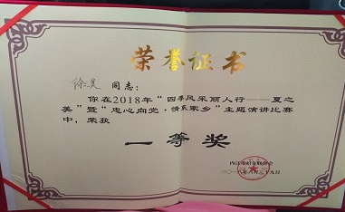 在內(nèi)江婦聯(lián)組織的2018年“四季風(fēng)采麗人行—夏之美”暨“忠心向黨.清溪家鄉(xiāng)”主題演講比賽中,我司推薦的選手徐昊代表國資委參賽,獲得一等獎(jiǎng)。