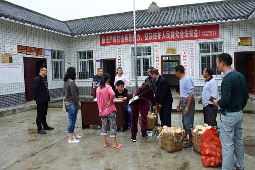 上午,吳書記一行在大橋村開展“以購代捐”活動,收購貧困戶農(nóng)副產(chǎn)品(地瓜),并現(xiàn)場發(fā)放收購資金。