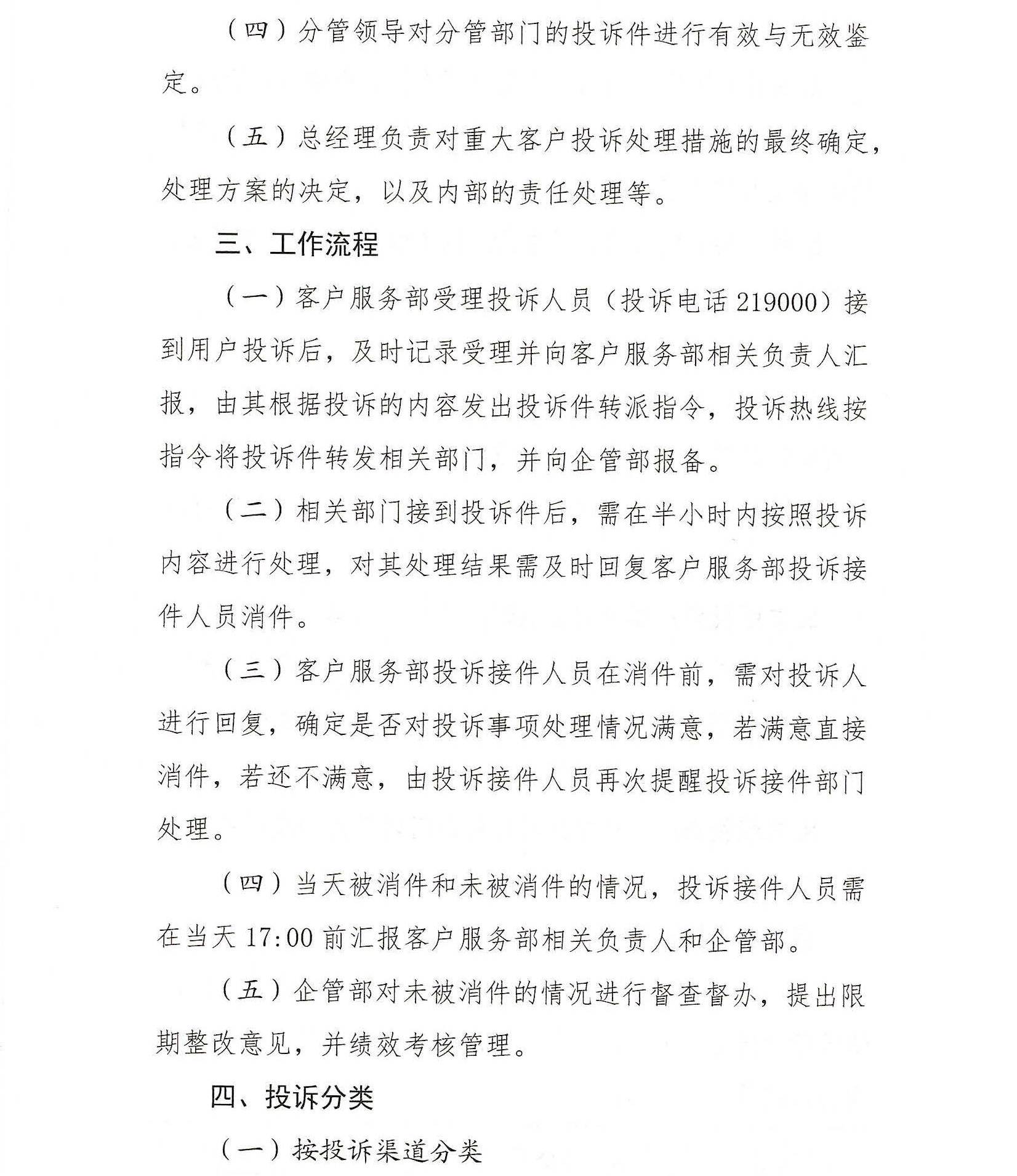 《客戶服務投訴處理管理辦法(試行)》