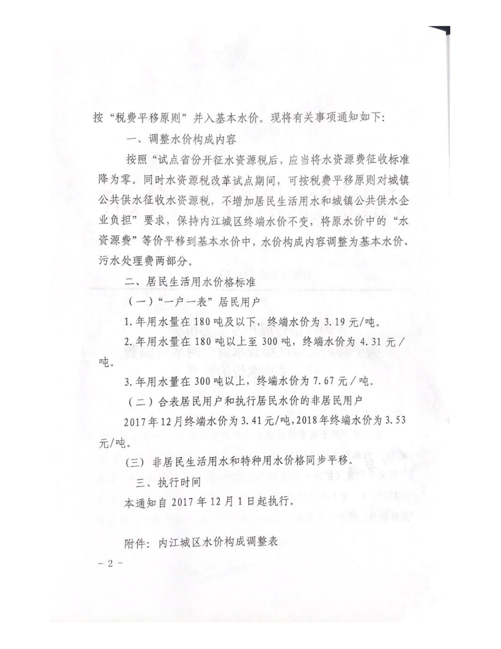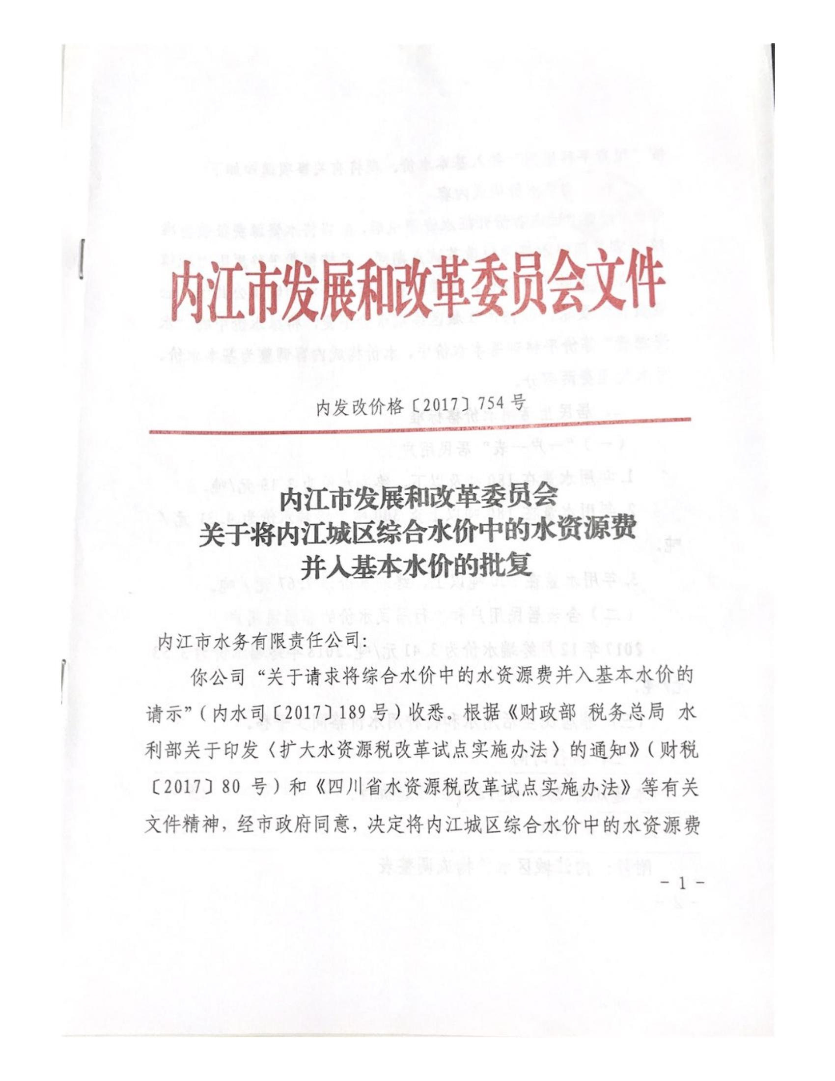 內(nèi)江市發(fā)展和改革委員會關(guān)于將內(nèi)江城區(qū)綜合水價中的水資源費并入基本水價的批復(fù)