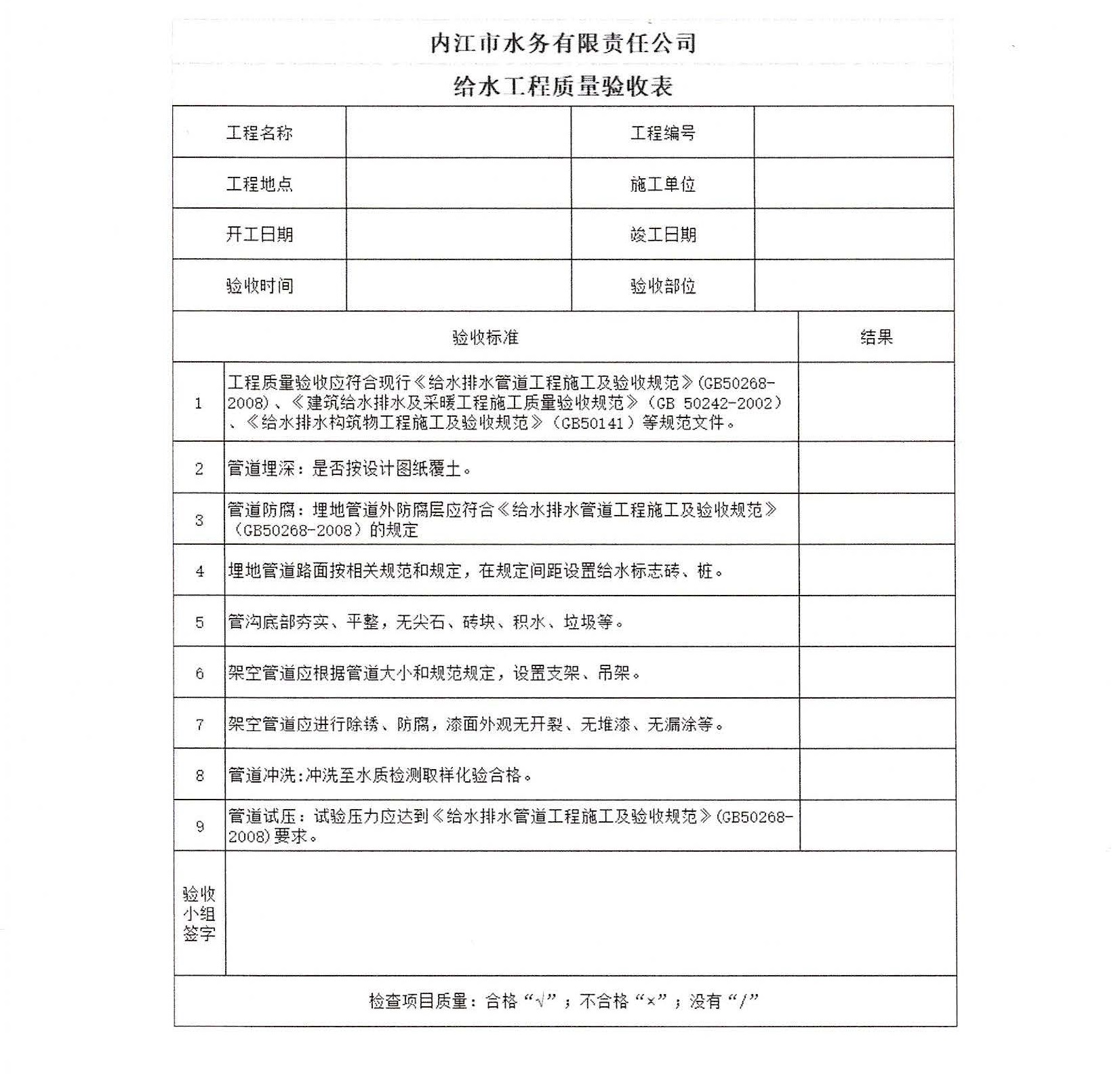 內(nèi)江市水務(wù)有限責(zé)任公司用戶報(bào)裝用水工程驗(yàn)收實(shí)施細(xì)則