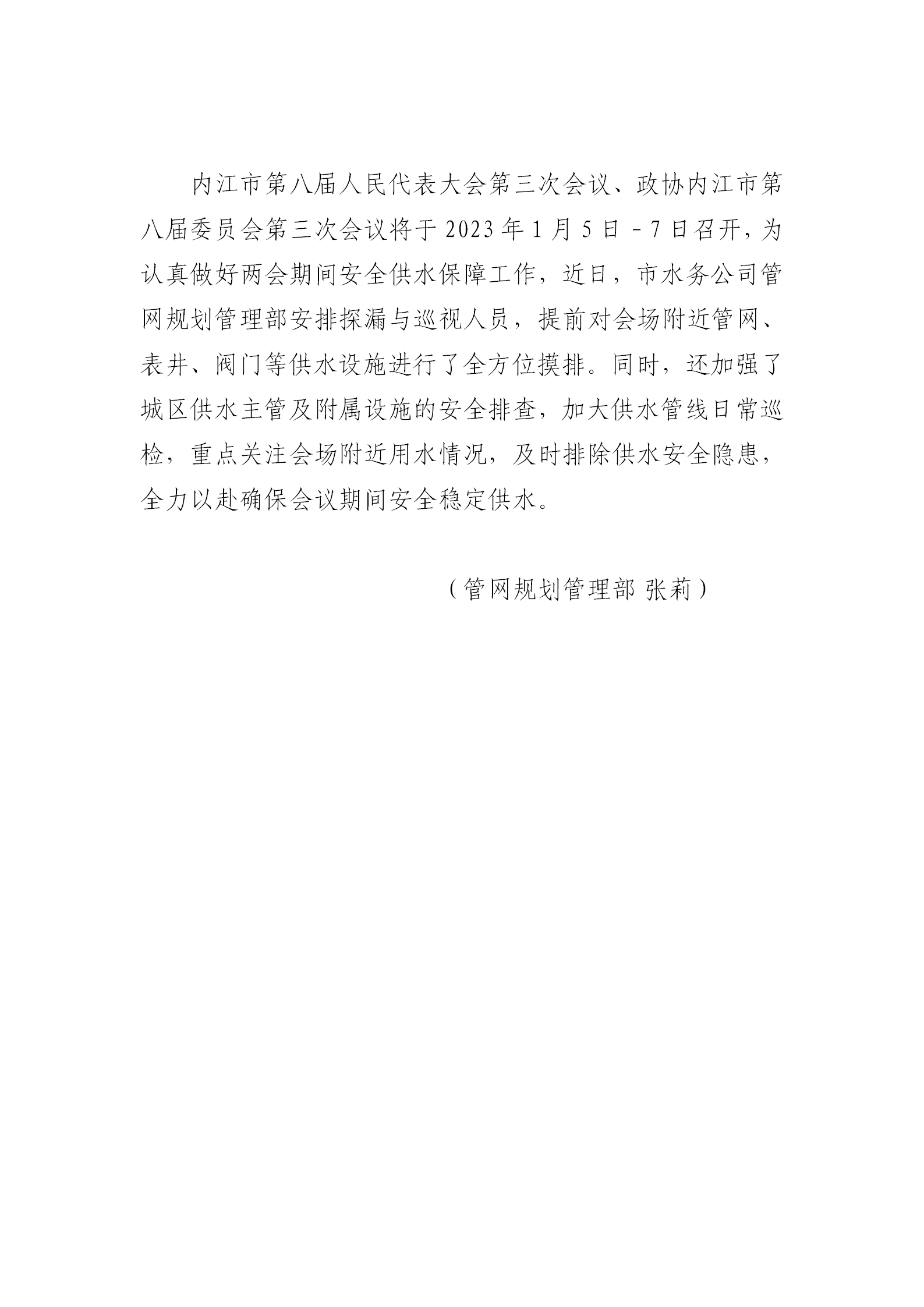 安全穩(wěn)定供水 兩會順利召開