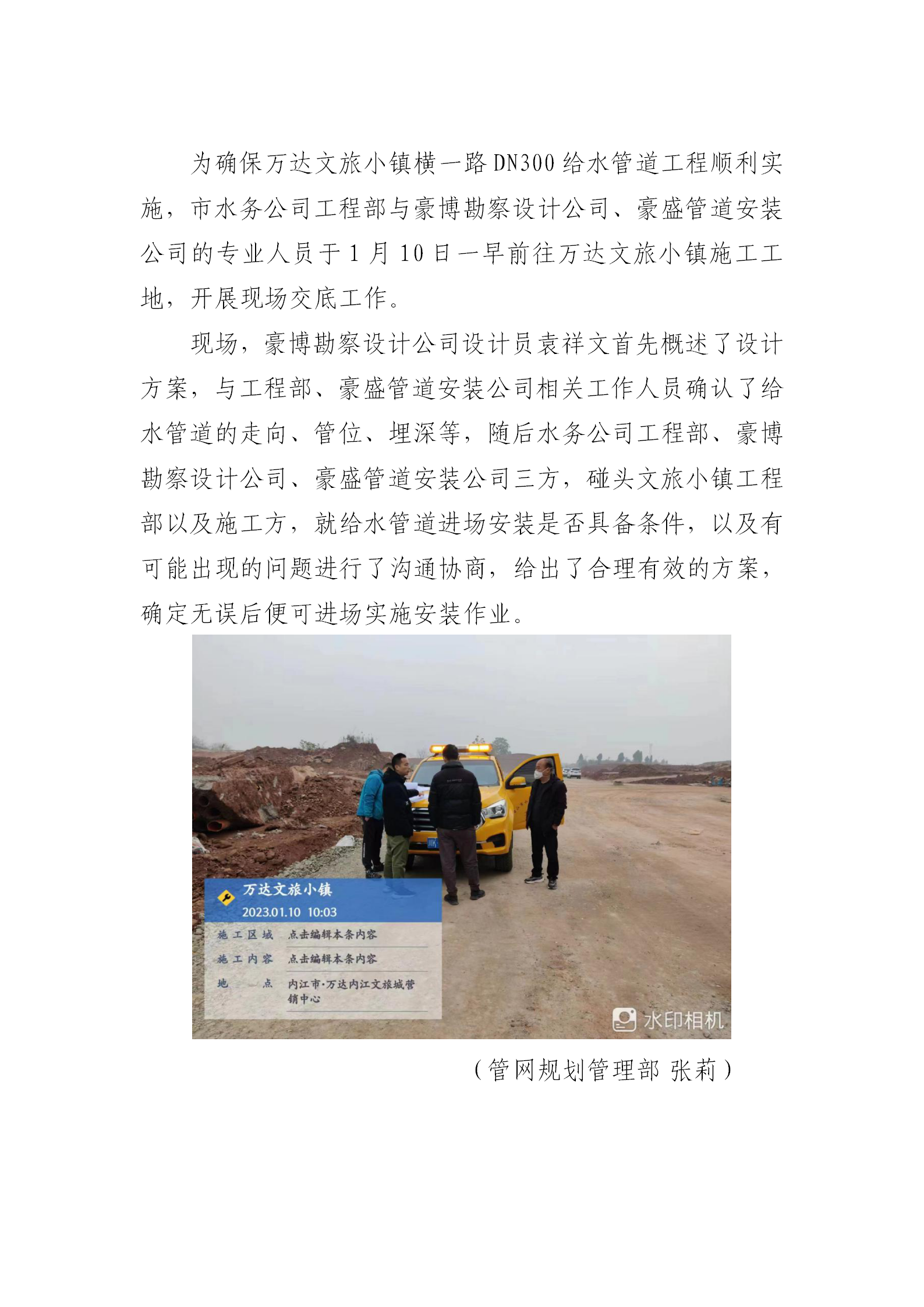 現(xiàn)場(chǎng)交底 確保給水管道工程順利實(shí)施