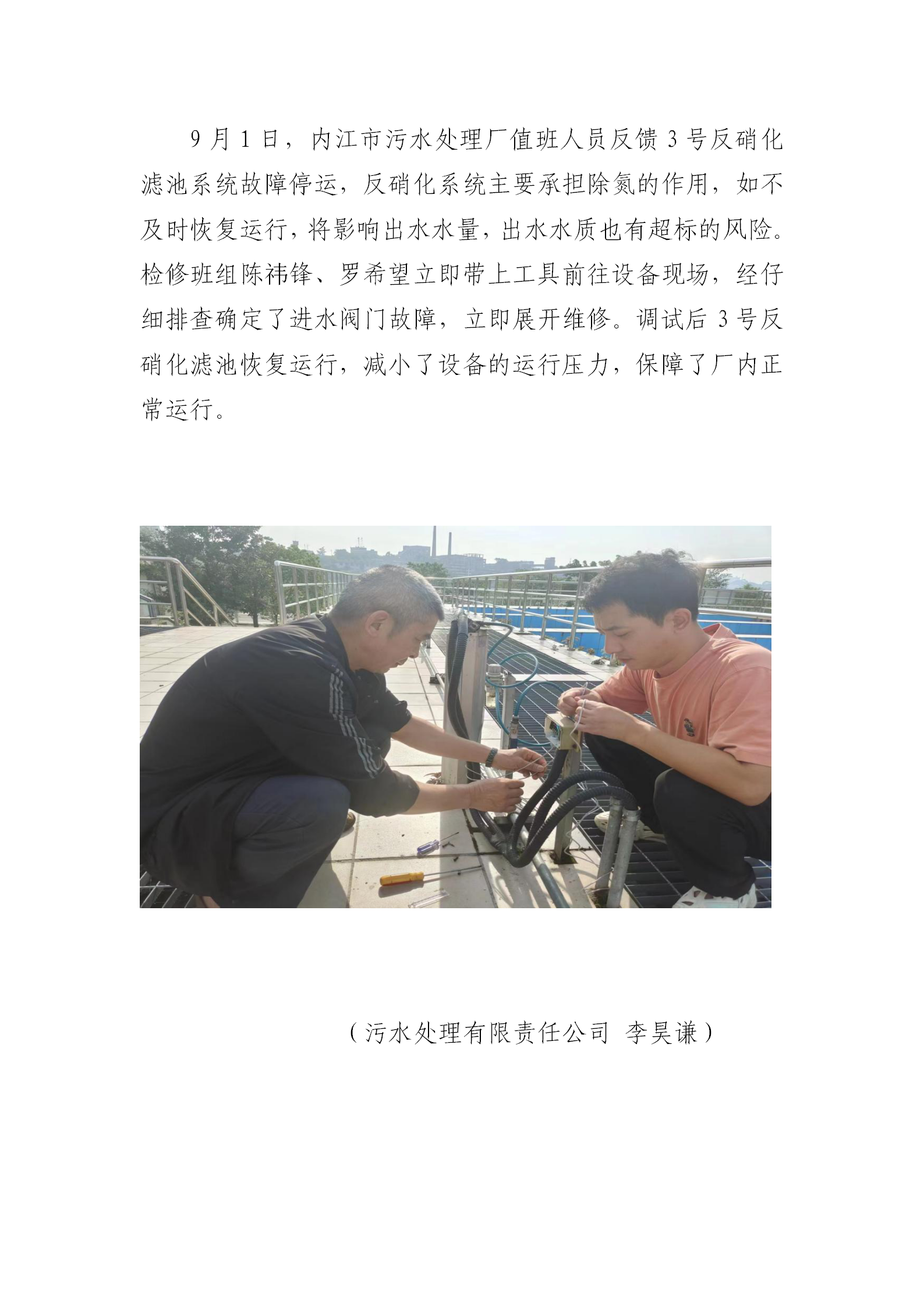 內(nèi)江市污水處理有限責(zé)任公司第一污水處理廠(chǎng)維修反硝化濾池故障