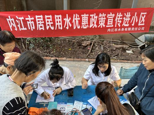 為持續(xù)推動優(yōu)化營商環(huán)境工作,落實為民辦實事服務(wù)舉措。10月23日,市水務(wù)公司客戶服務(wù)部組走進蓮安公租房、臨江花園保障性住房、廟兒山望江苑,開展了“內(nèi)江市居民用水優(yōu)惠政策宣傳進小區(qū)”活動。